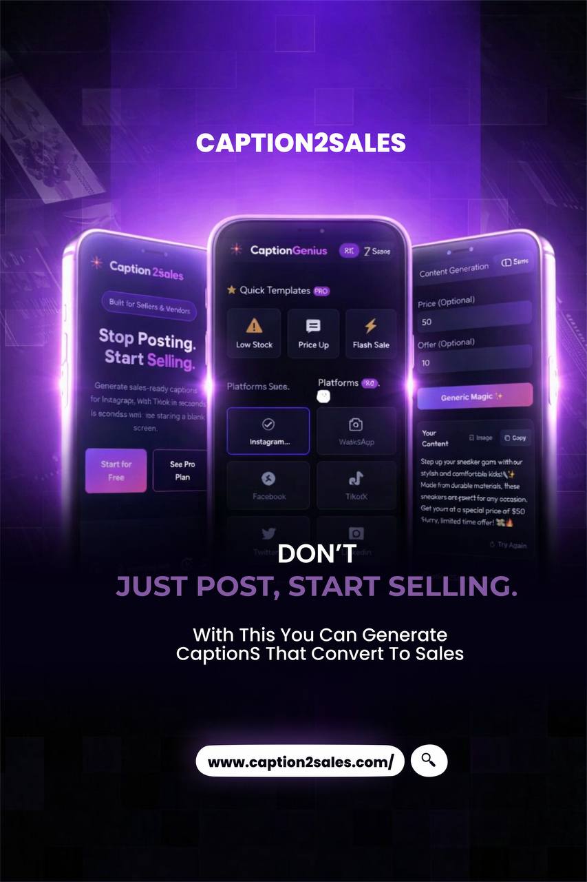 Generate sales-ready captions for Instagram, WhatsApp, and TikTok in seconds. No more staring at a blank screen.